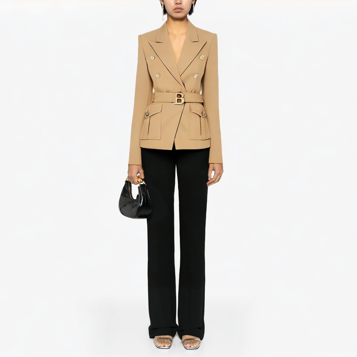This women’s suit jacket, with its elegant camel tone and exquisite slim design, perfectly interprets the combination of classic and fashion. It is made of high-quality polyester and cotton blended woven fabric, which is delicate, comfortable, wrinkle-resistant and durable. The jacket design adopts double-breasted closure, showing the classic style of traditional suits. At the same time, the lapel notch design and flap button pockets add fashion and practicality.