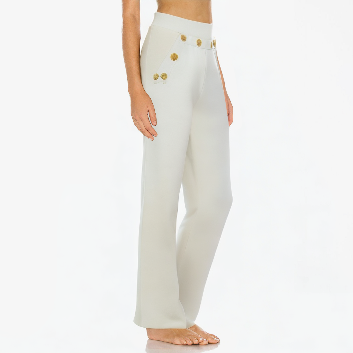 This spring and autumn fashion design button waist women’s trousers are made of high-quality wool blended fabric, which combines the softness of wool and the durability of polyester, and is perfectly suitable for office and daily casual wear needs. The unique straight cut and elastic waist design create simple and neat lines, which can not only show the capable style of working women, but also provide all-weather comfort. The waistband is decorated with exquisite buttons to enhance the exquisiteness and fashion sense of the overall shape, so that you can maintain comfort and elegance even in busy work.