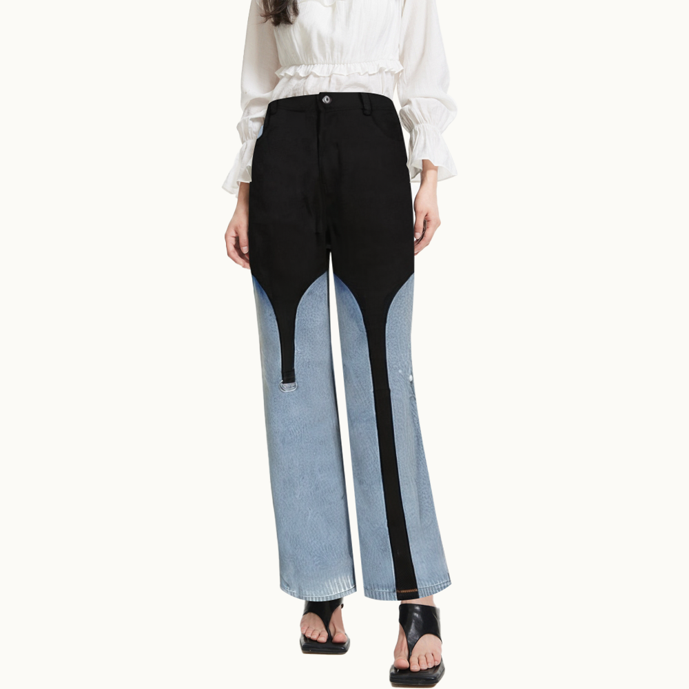 Contrast color stitching high waist women's denim trousers