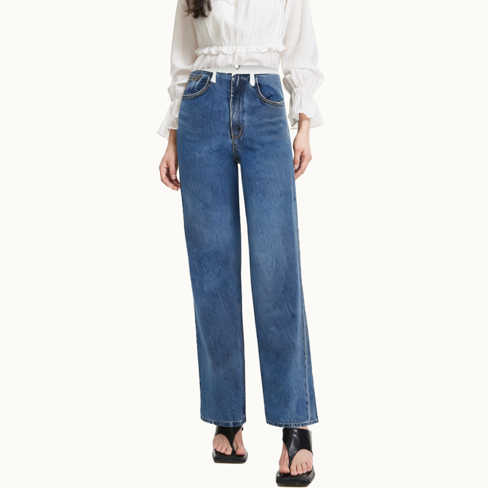 Contrast waist straight leg women's denim trousers