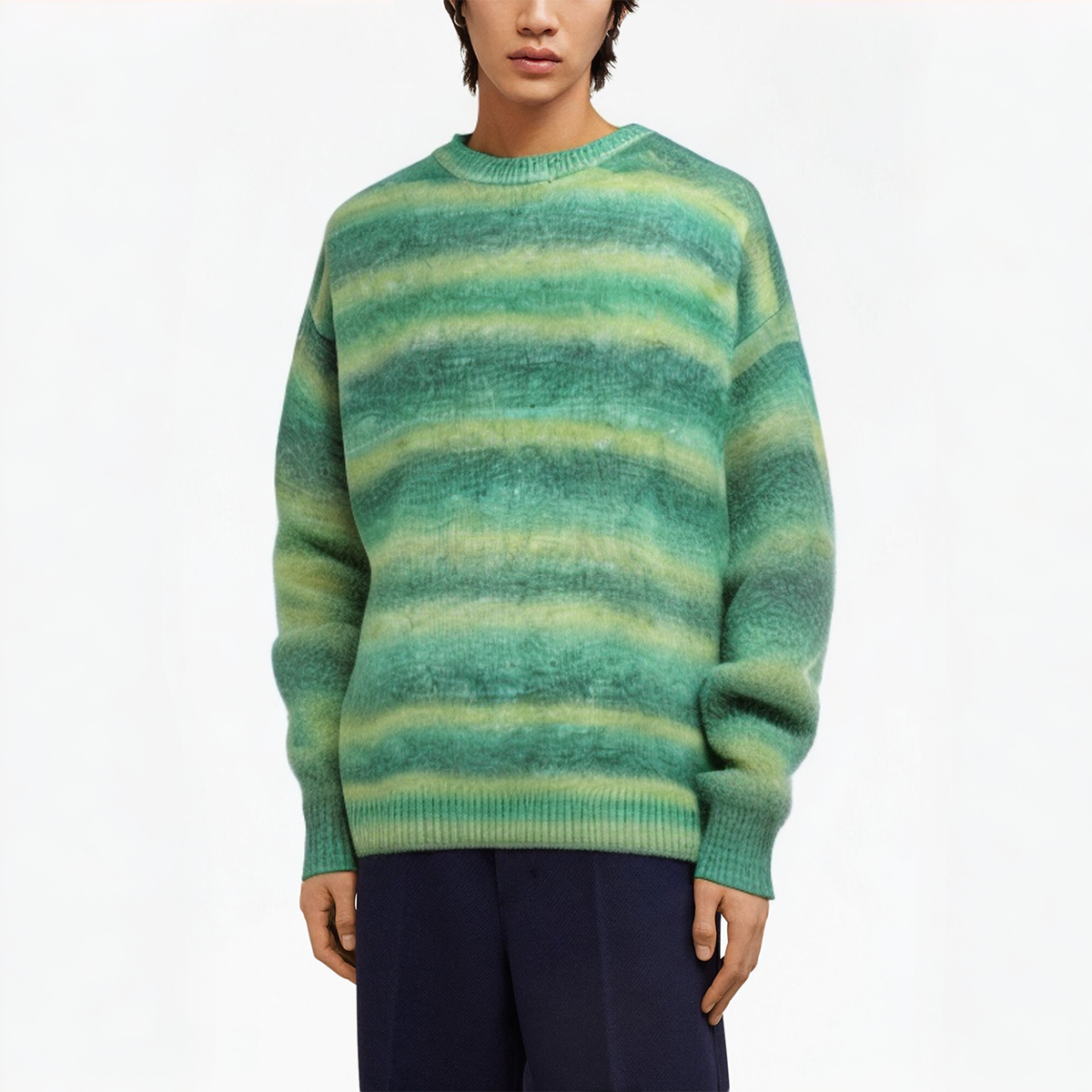 • Gradient stripe design: This sweater adopts a gradient stripe design, and the transition from dark to light colors is dynamic, showing a unique sense of layering, which is very visually impactful and shows men’s eclectic fashion taste.