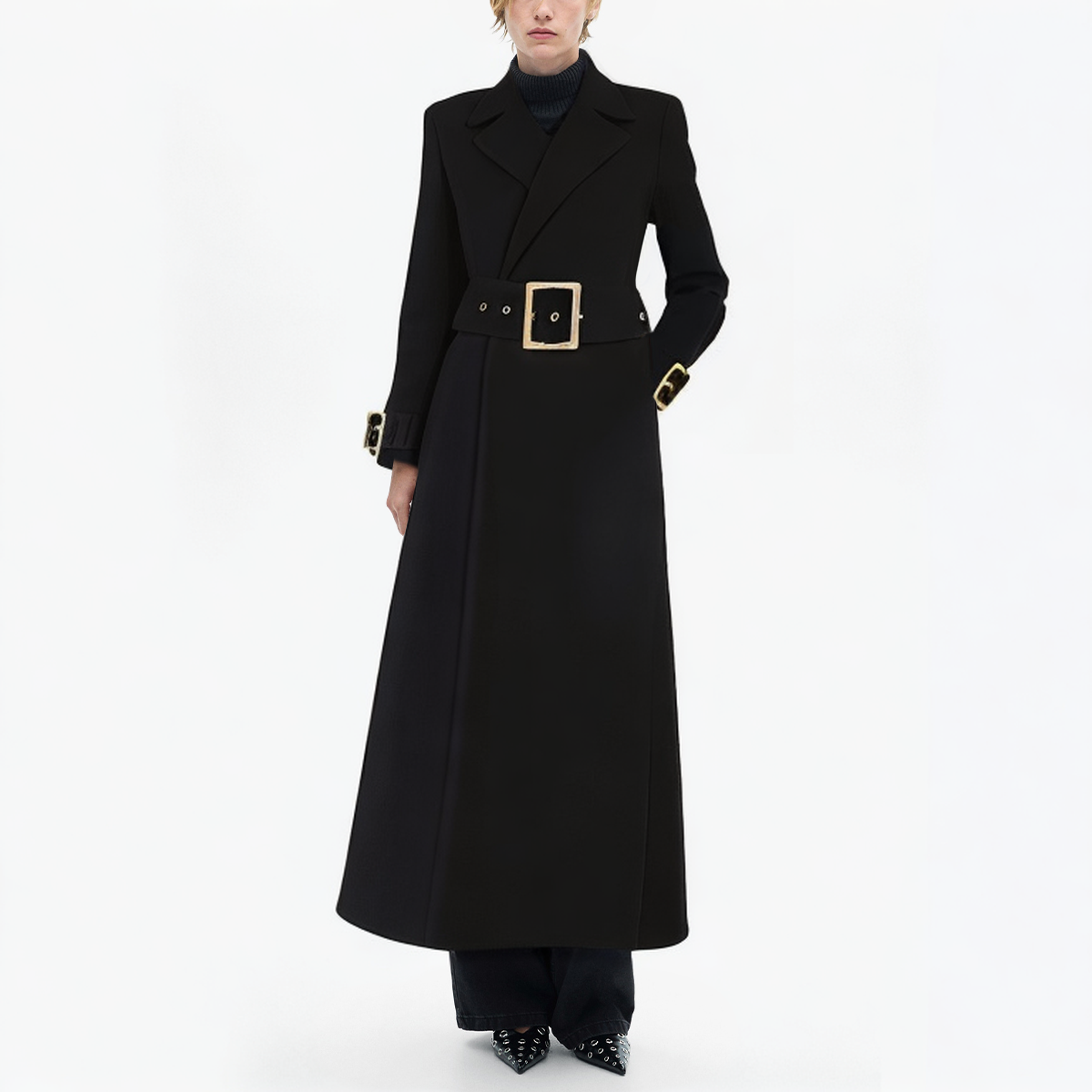This high-quality black wool blended women’s slim long coat for autumn and winter combines fine fabrics and exquisite design, showing the perfect fusion of simplicity and elegance. Made of wool and high-quality blended materials, this coat is not only soft and warm, but also has excellent comfort and durability, suitable for autumn and winter. The design of the lapel notch adds a modern touch and makes the overall look more fashionable. The slim fit highlights the curves of women, and with the matching belt, it can further tighten the waistline and show the perfect figure. This coat is made of sustainable materials, which is both environmentally friendly and fashionable. Whether it is commuting, leisure, or dating, this coat can help you create a capable and elegant look.