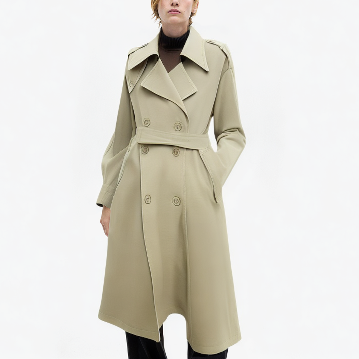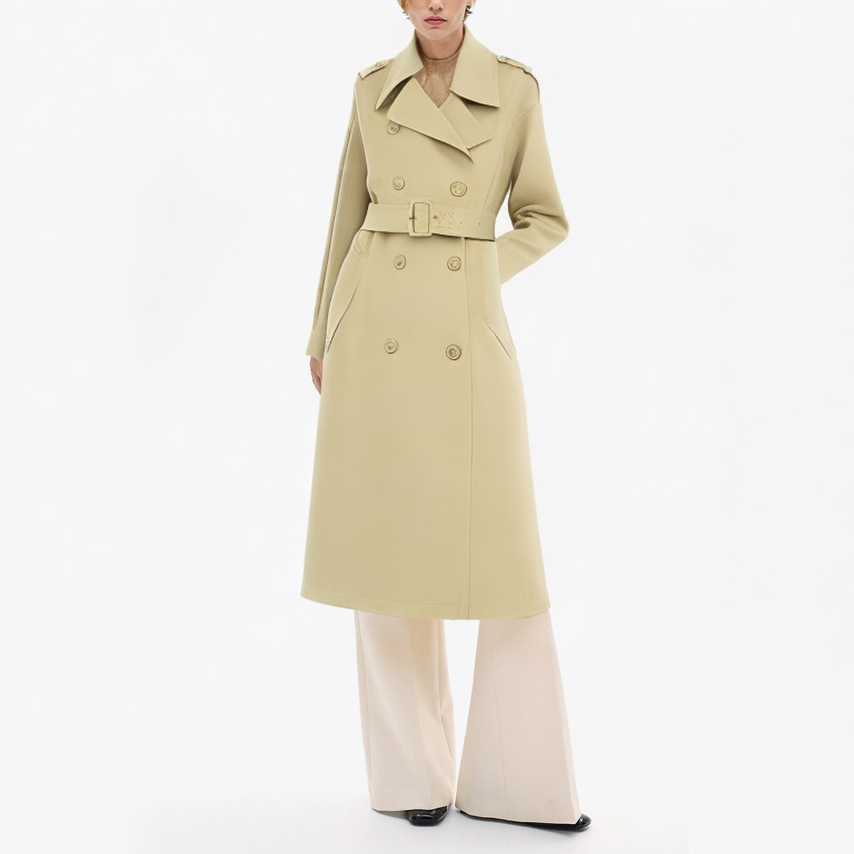 - Double-breasted design: The trench coat adopts a double-breasted design, which not only has a retro design, but also enhances the structural sense of the coat and improves the overall wearing effect. While maintaining the classic design of the trench coat, the double-breasted design also makes the coat more slimming, showing the elegance and sophistication of the wearer.