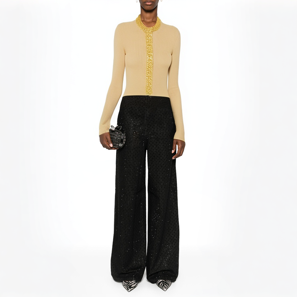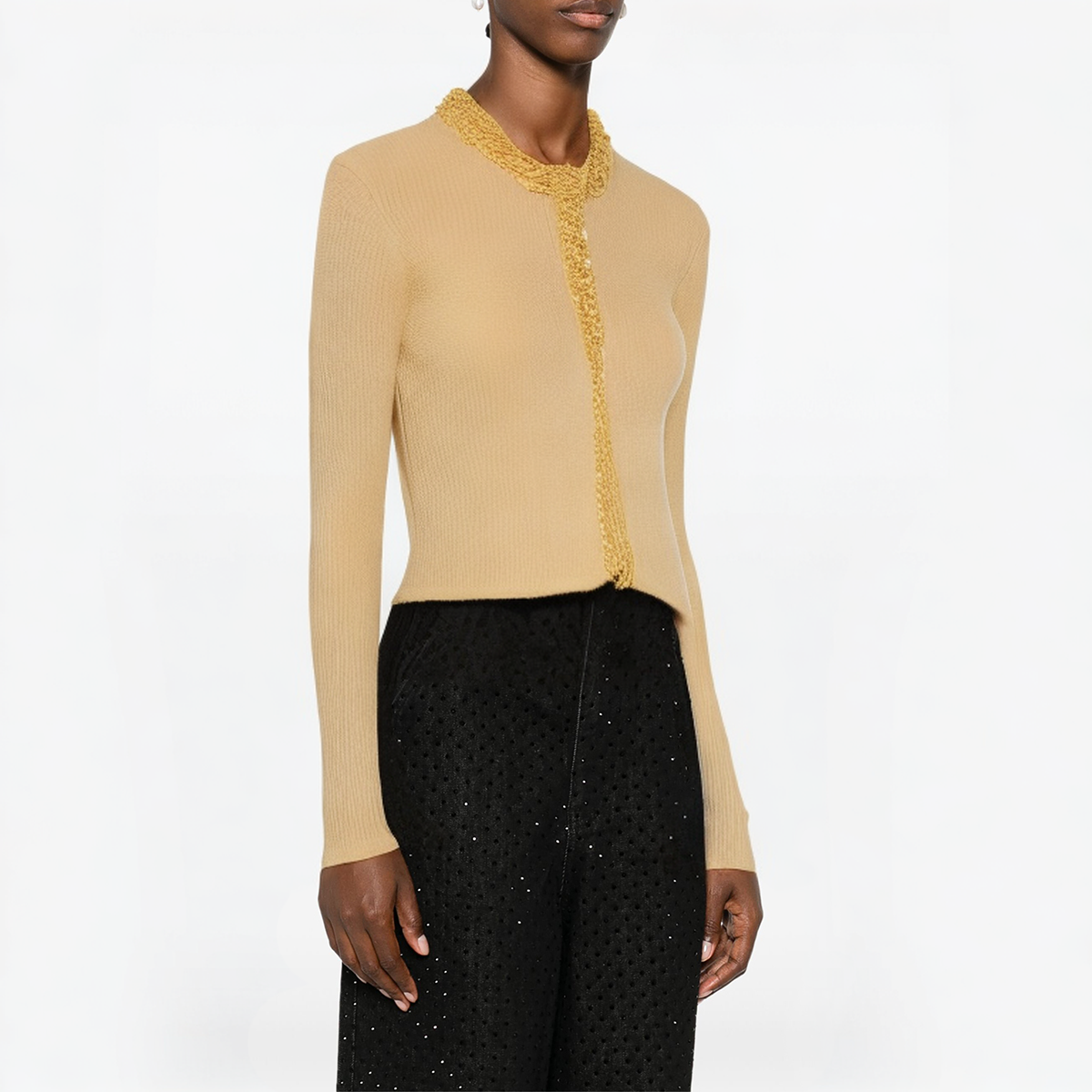 This fashionable beaded women’s round-neck knitted cardigan sweater incorporates the perfect combination of retro and modern fashion. The elegant beaded design is in warm brown tones, low-key yet exquisite. The round-neck cardigan style is versatile and durable, suitable for a variety of wearing occasions, from daily commuting to party leisure, it can add a touch of high-end and personality to your look.