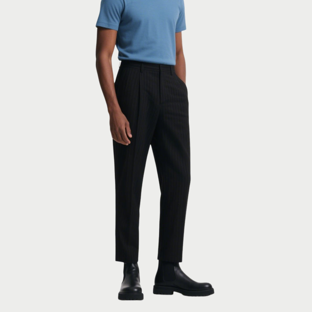 Button closure, zip fly, cut to fit most men’s body types, sits at waist, straight leg.
