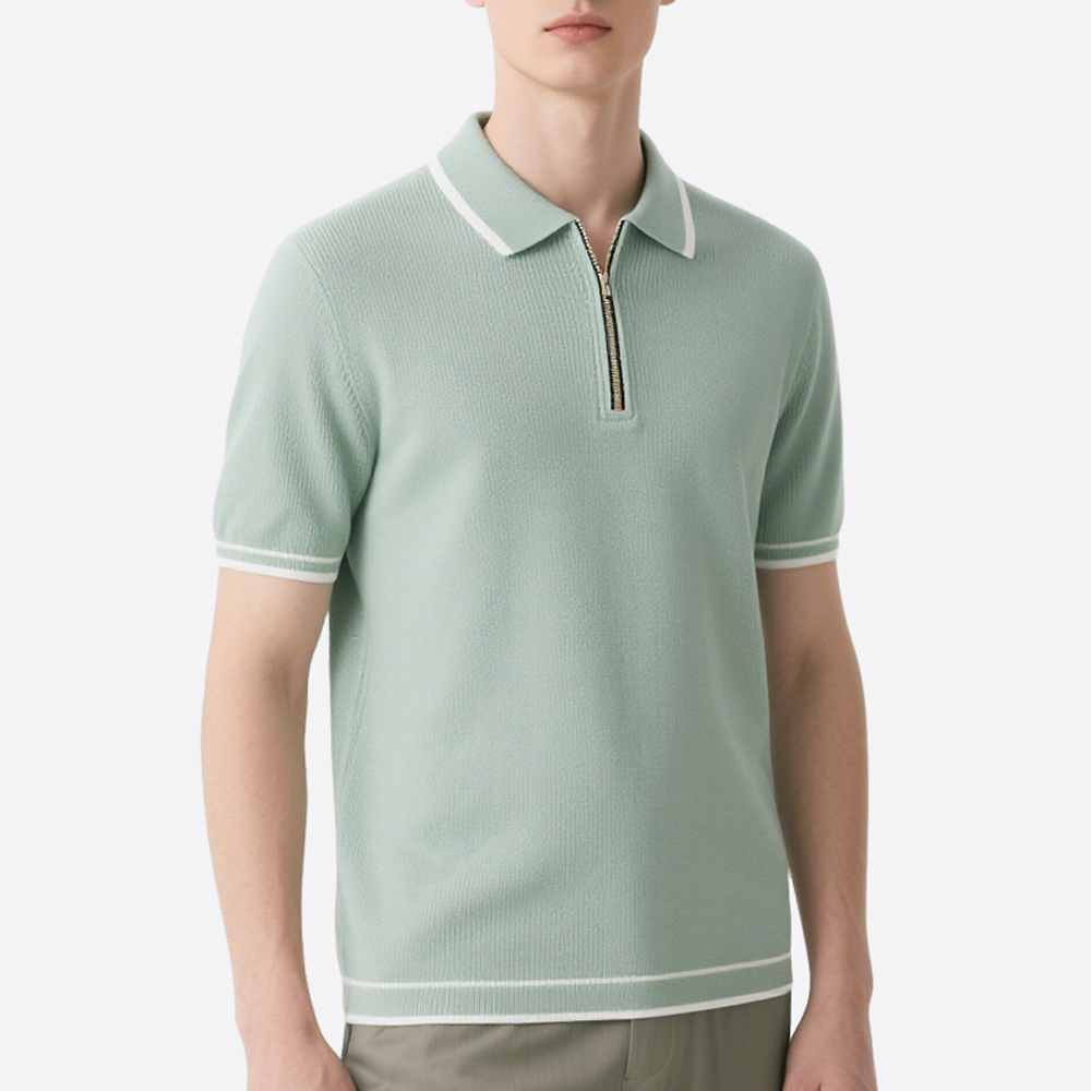 Elevate your summer wardrobe with our premium Mint Refresh Zippered Polo, crafted for those who appreciate both style and functionality. This sophisticated short-sleeved shirt features a refined design perfect for transitioning effortlessly from the golf course to the cocktail hour.