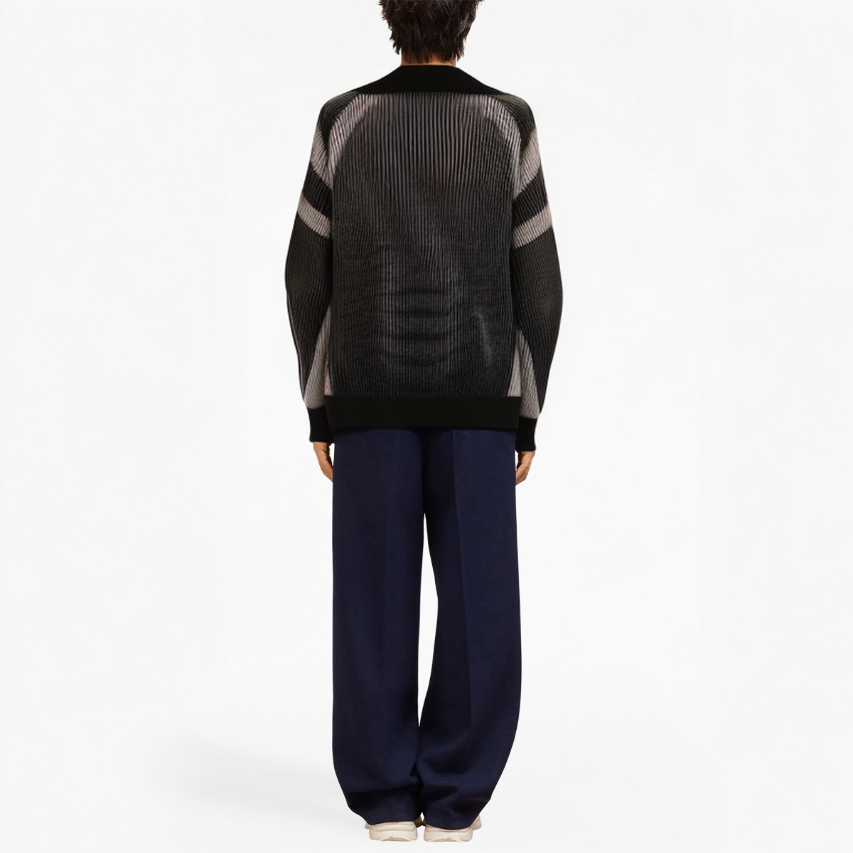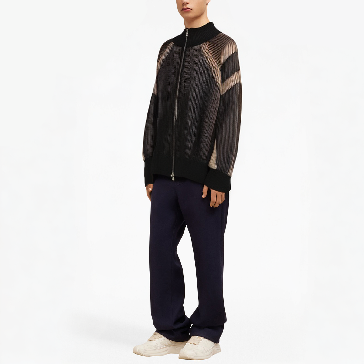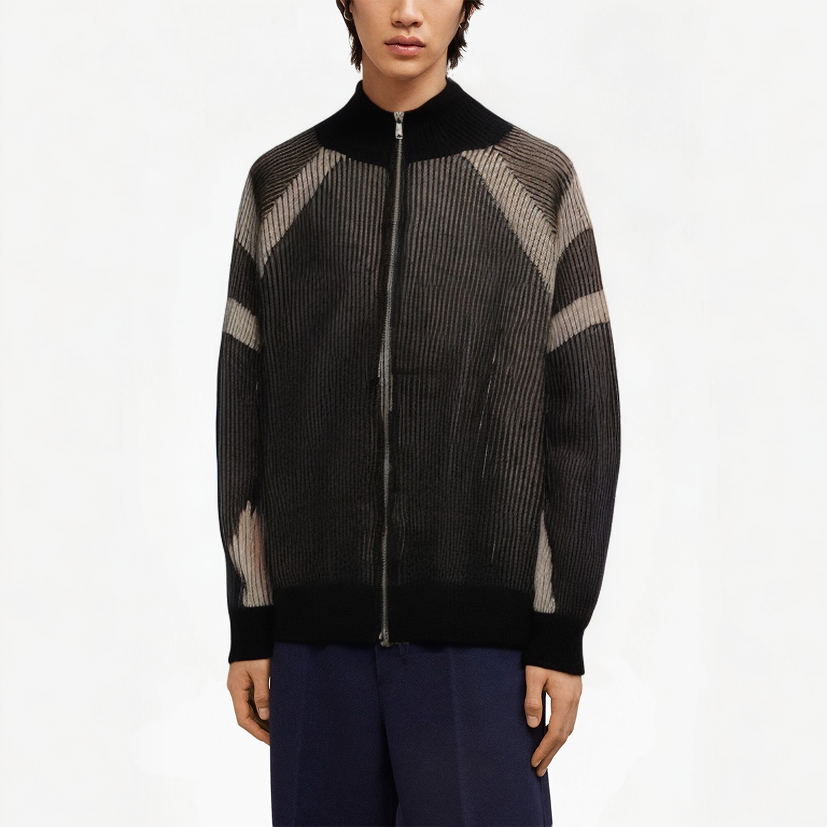 This long-sleeved high-neck geometric contrast wool cardigan knitted sweater combines modern geometric contrast design with exquisite embroidery craftsmanship, showing a unique sense of fashion and artistic atmosphere. The zipper opening design is easy to put on and take off, and adds a sense of fashion and layering, which is suitable for the changing temperature and dressing needs in autumn and winter. It is woven with high-quality wool, which is soft to the touch and extremely warm. It is also breathable and comfortable, which can bring you a warm and comfortable wearing experience. Whether worn alone or with an inner layer or outer layer, this sweater allows you to easily create a unique personal style.