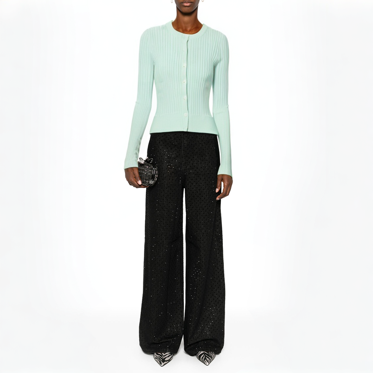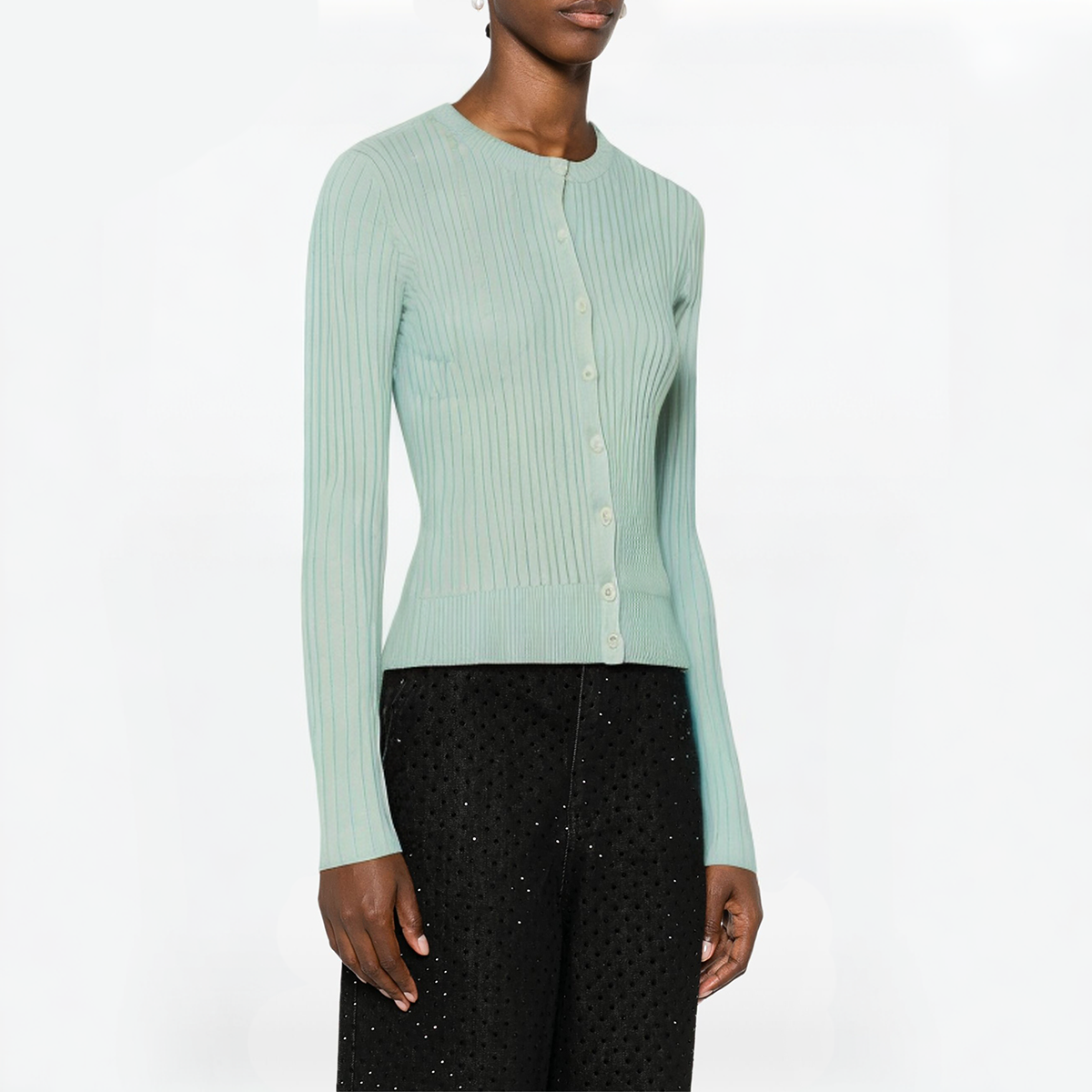 This short vertical striped knitted sweater is soft, breathable and shiny, perfectly blending the luxury of silk and the comfort of cotton, giving you the ultimate wearing experience. In terms of design, it adopts a classic round neck and single-row button placket, which is simple yet exquisite, showing an elegant and capable fashion style. The vertical stripe design not only adds a sense of visual layering, but also visually lengthens the body to create a more slender effect.