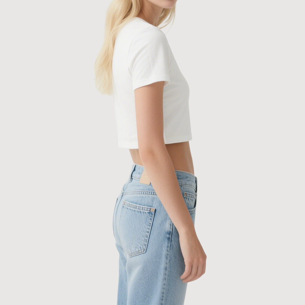 Crew neck, short sleeves, and a slim fit for a cute, casual style. Layer at the waist for a stylish crop top.