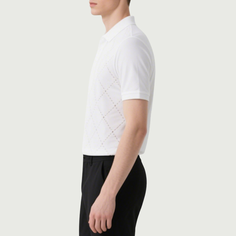 Upgrade your summer wardrobe with this versatile knit polo shirt—where classic design meets modern comfort. Made from a soft, breathable cotton-blend knit, this short-sleeve polo keeps you cool and polished from day to night.