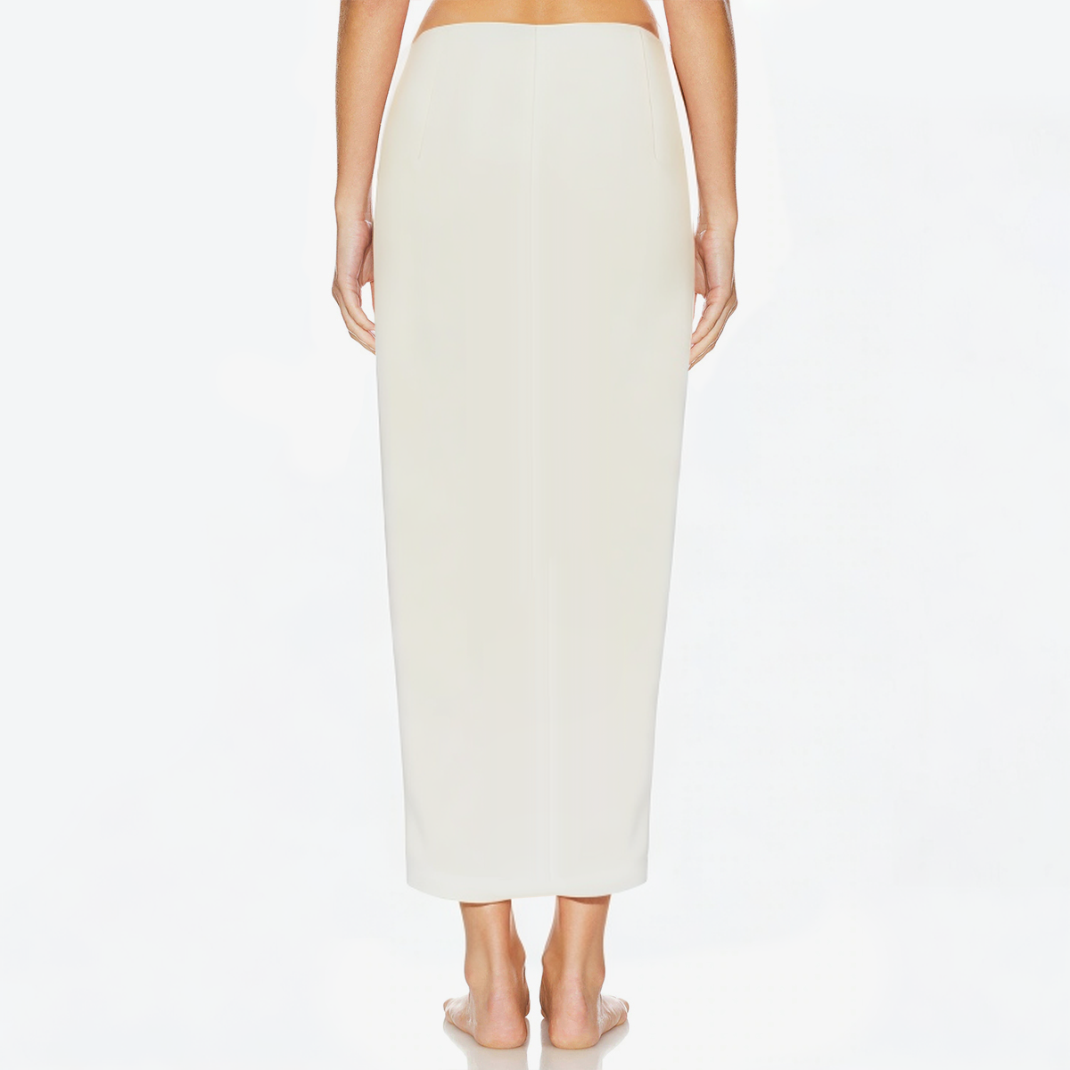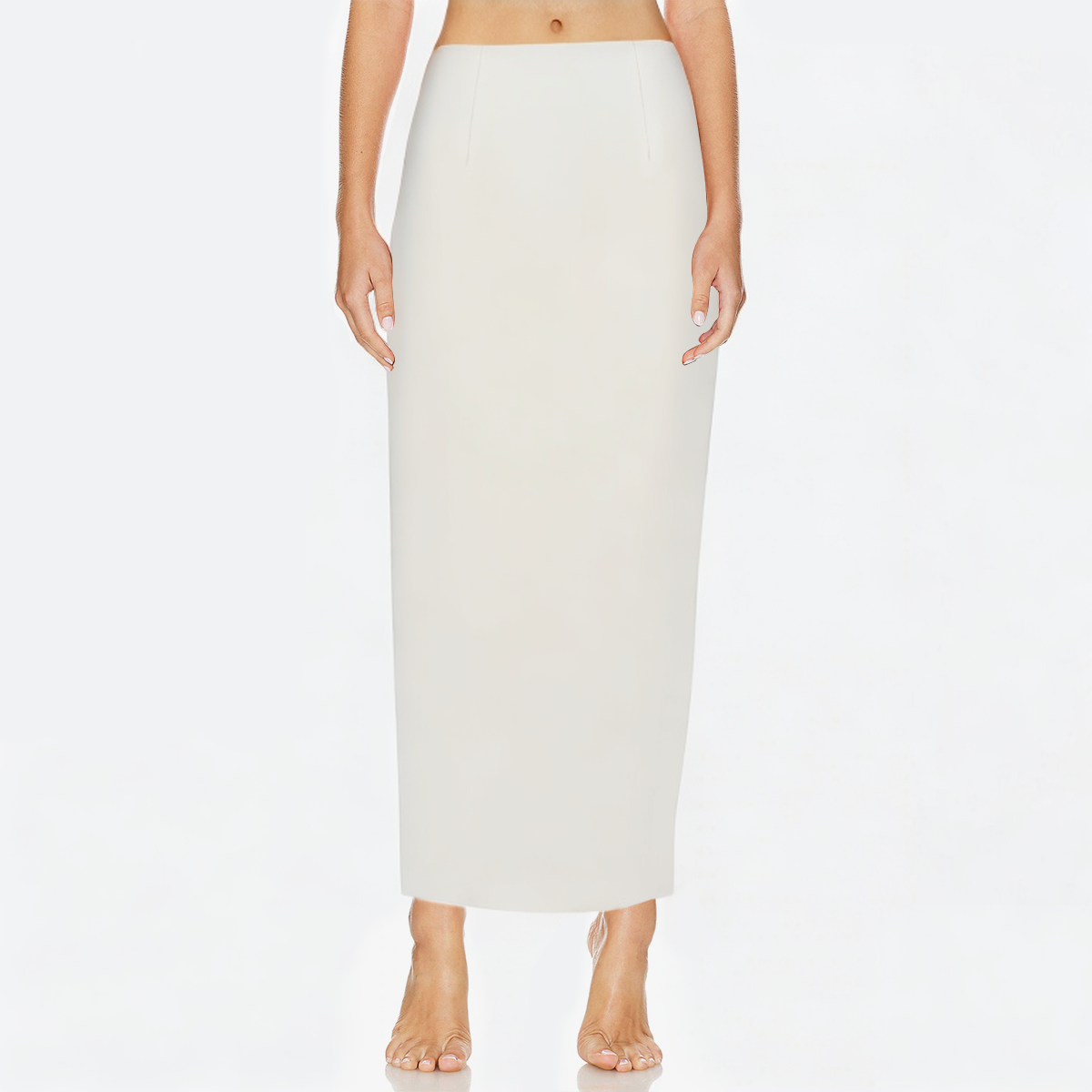 This elegant half-length pencil skirt from the ivory autumn series is made of wool and polyester blended fabric. The design is simple yet refined, creating a perfect sense of workplace elegance. The ivory white tone is gentle and unobtrusive, and can be easily matched with various tops, showing the intellectuality and elegance of women. The combination of wool and polyester provides the softness and comfort of natural wool, while also having the durability and wrinkle resistance of polyester, which is very suitable for autumn wear. The pencil skirt design of the skirt fits the body closely, outlining the beautiful curves, highlighting the confidence and charm of women. Whether paired with a shirt, sweater, or formal coat, this skirt can easily cope with various occasions.
