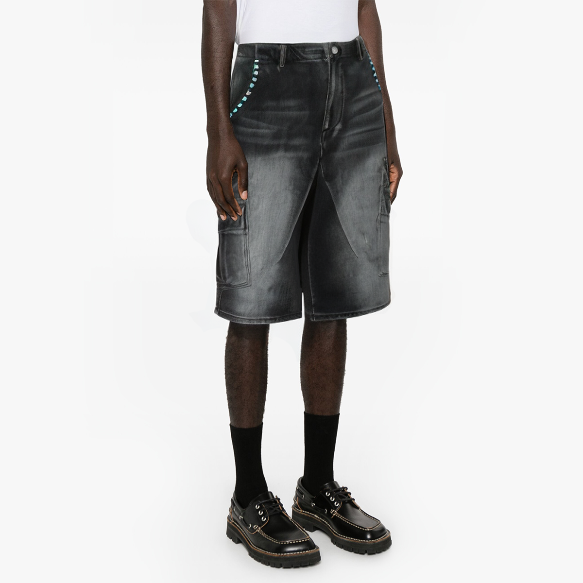 These men’s denim shorts feature a unique wash-fading process, giving them a vintage look, while turquoise accessories add a touch of eye-catching detail. The multi-pocket design adds practicality to the shorts while maintaining a classic street style. Whether it’s for daily outings or outdoor activities, they provide a comfortable and stylish wearing experience.
