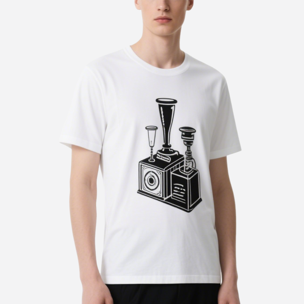 White Men's T-Shirt Retro Stylish Tee Casual