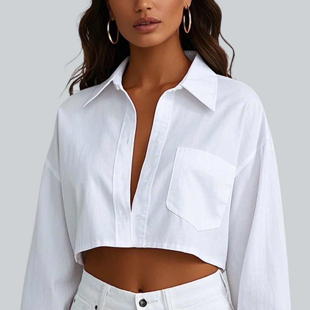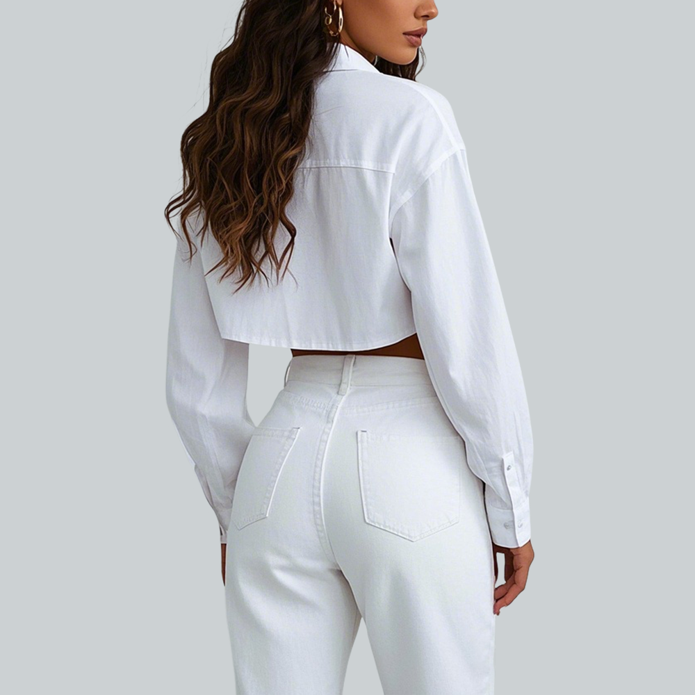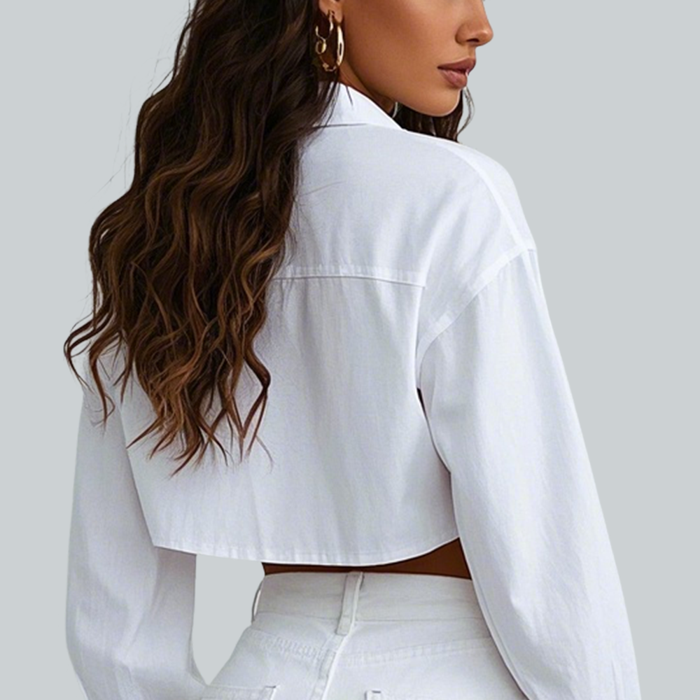 Sophisticated cropped design that cleverly lifts the waistline and visually lengthens the legs. Comfortable long sleeves for cooler weather. Wear it close to your body or for a casual, lazy vibe. Made from soft, stretchy fabric for maximum mobility.