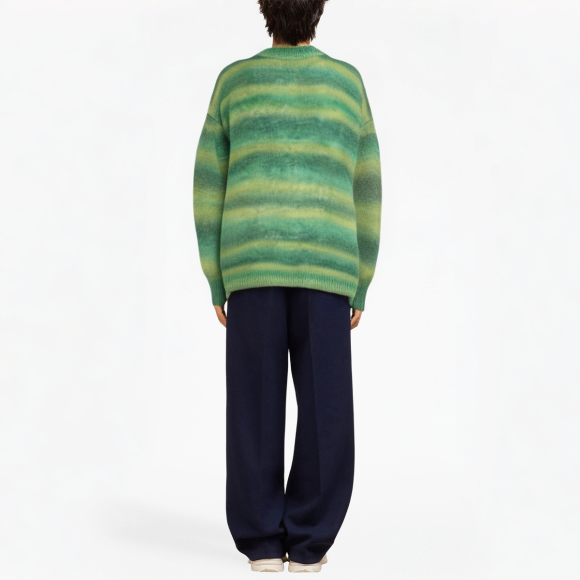 - Gradient stripe design: This sweater adopts a gradient stripe design, and the transition from dark to light colors is dynamic, showing a unique sense of layering, which is very visually impactful and shows men’s eclectic fashion taste.
