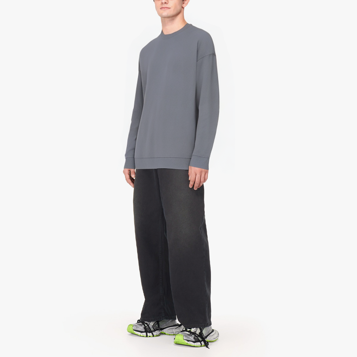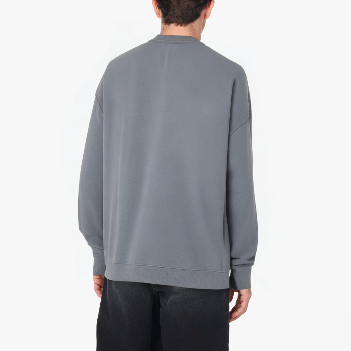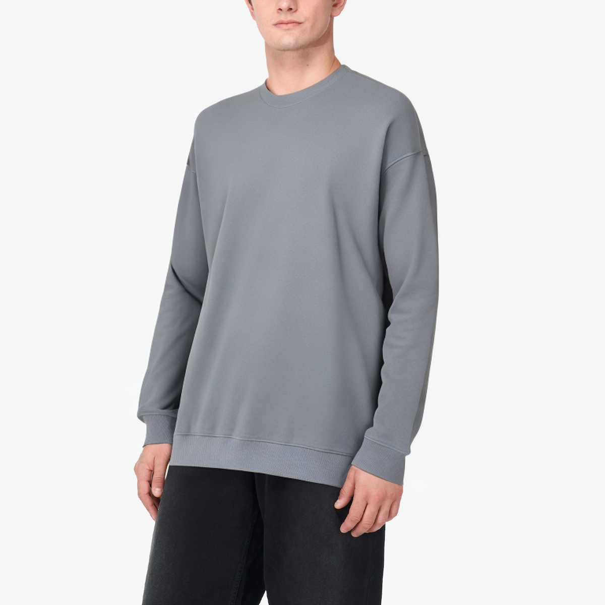 Grey crew neck cotton men's long sleeves