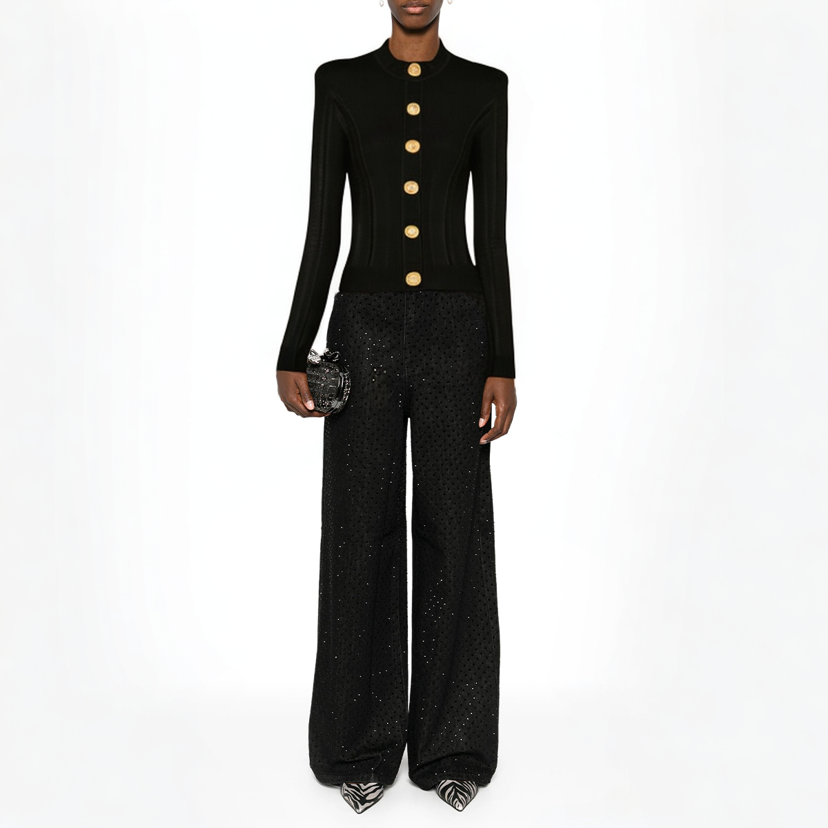 This high-quality spring retro women’s solid color round neck slim knit top is made of mixed fabrics, which is both comfortable and fashionable. The round neck design is simple and generous, which can show the elegant neck line and is suitable for matching with various accessories. The slim version highlights the curve of the female body, which is comfortable and not tight to wear, showing the elegance and confidence of women. The single-breasted placket design is not only easy to put on and take off, but also adds a sense of refinement to the overall shape, which is very suitable for office environment or daily wear. The overall style of this sweater is retro and elegant. It is suitable for matching with trousers or skirts, and it is easy to create a fashionable look for different occasions.