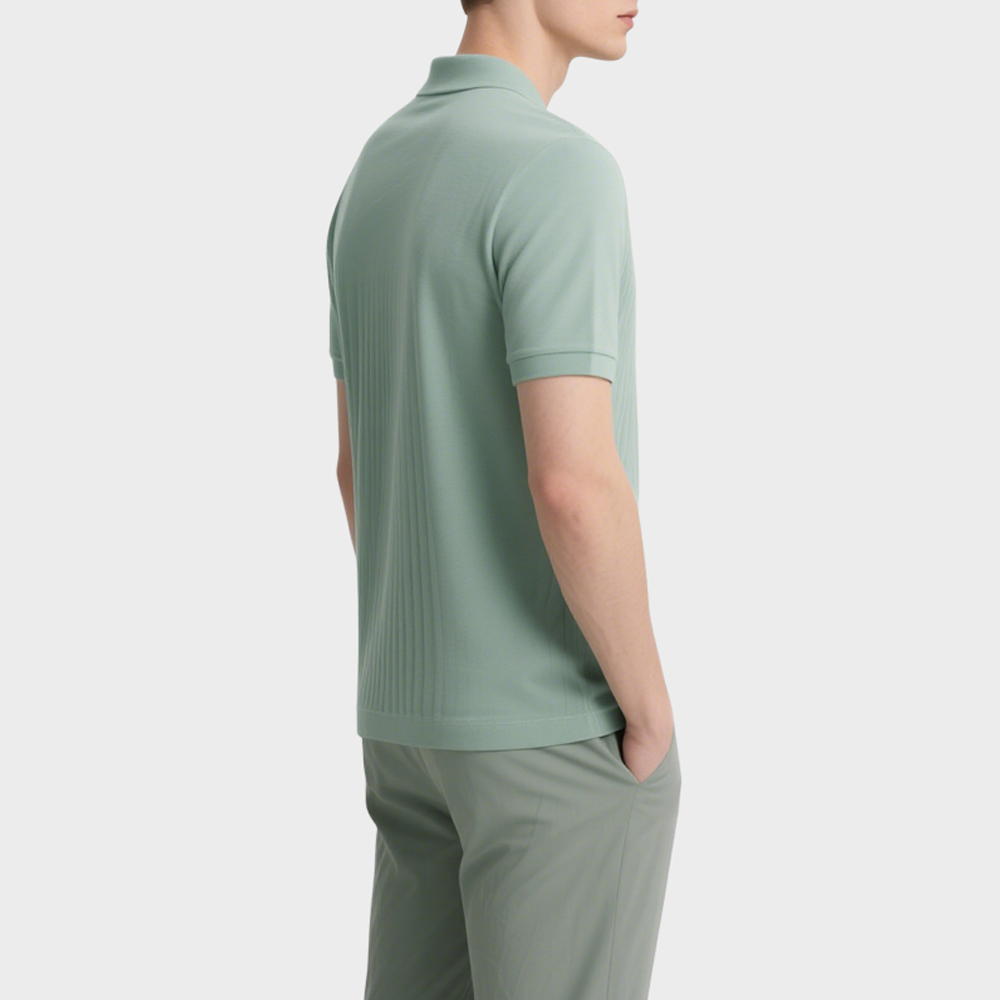 Crafted from a premium 92% Supima cotton and 8% elastane blend, this polo shirt offers exceptional softness against the skin while maintaining excellent shape retention. The fabric features a subtle vertical ribbed texture that adds depth and sophistication to a classic style.