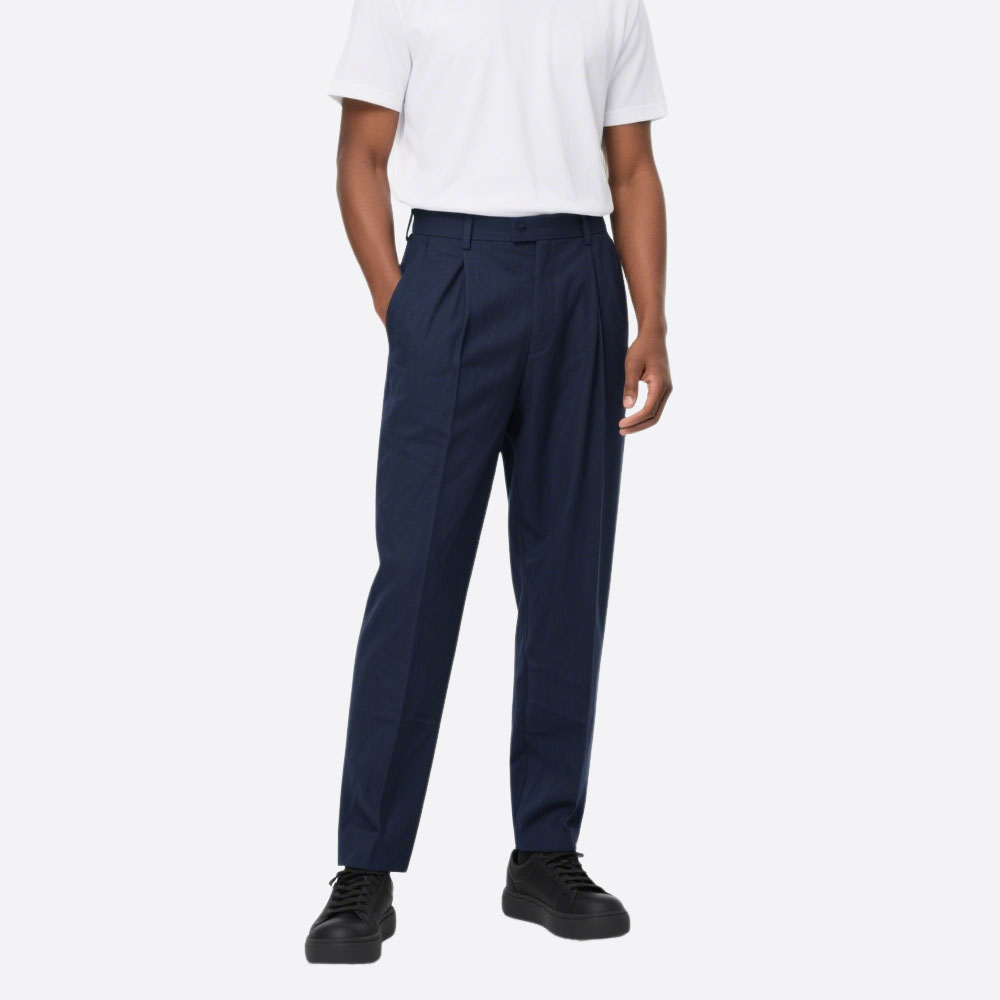 Button closure, zip fly, cut to fit most men’s body types, sits at waist, straight leg.