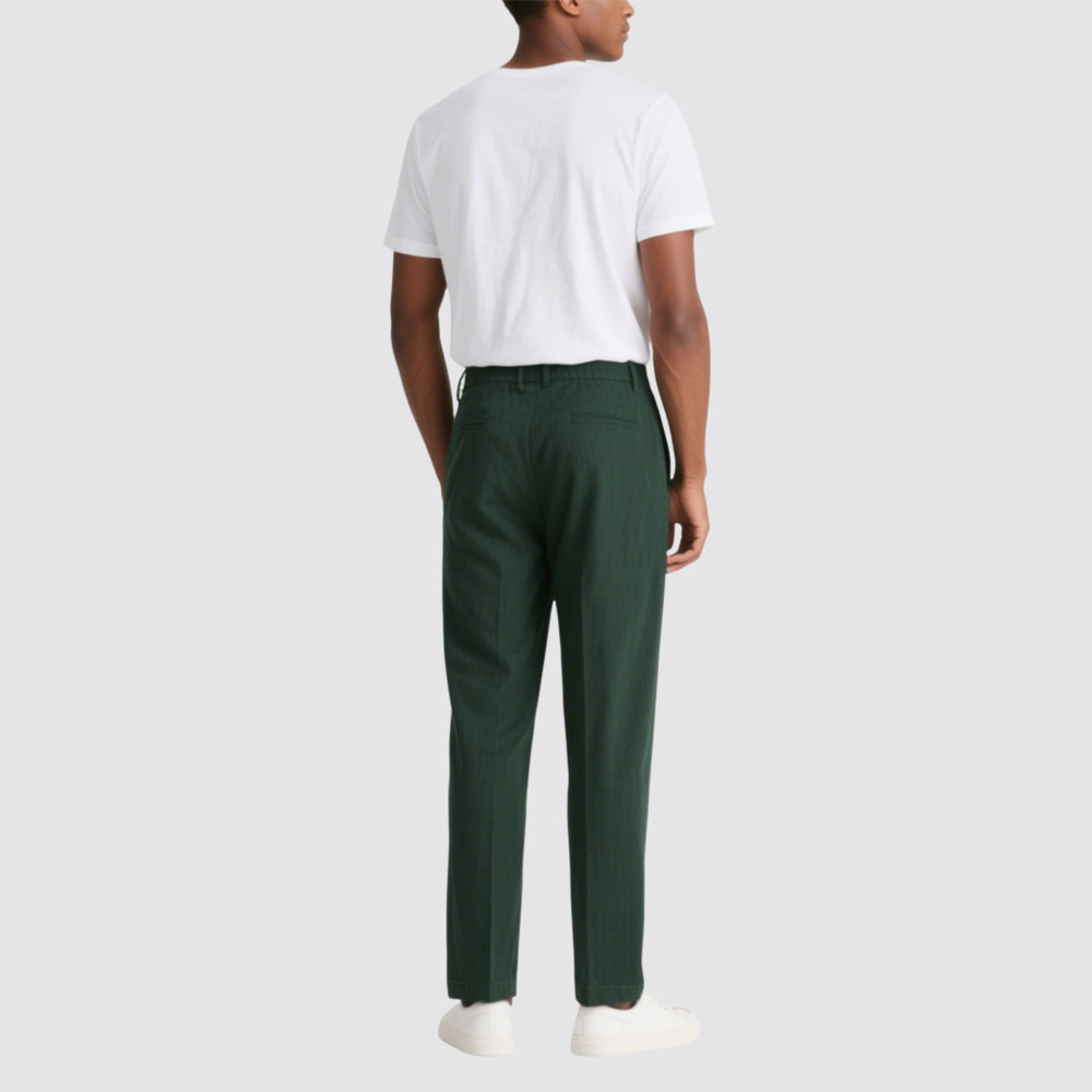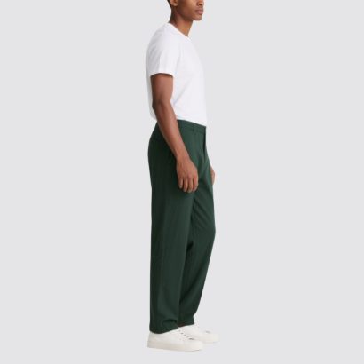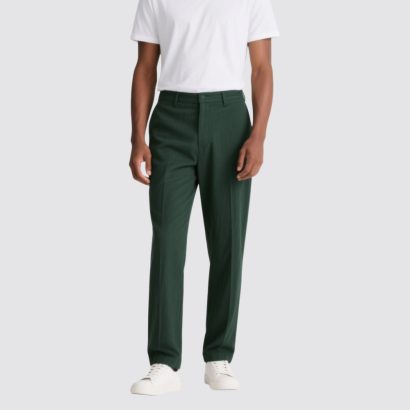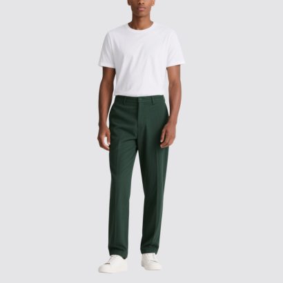 Button closure, zip fly, cut to fit most men’s body types, sits at waist, straight leg.