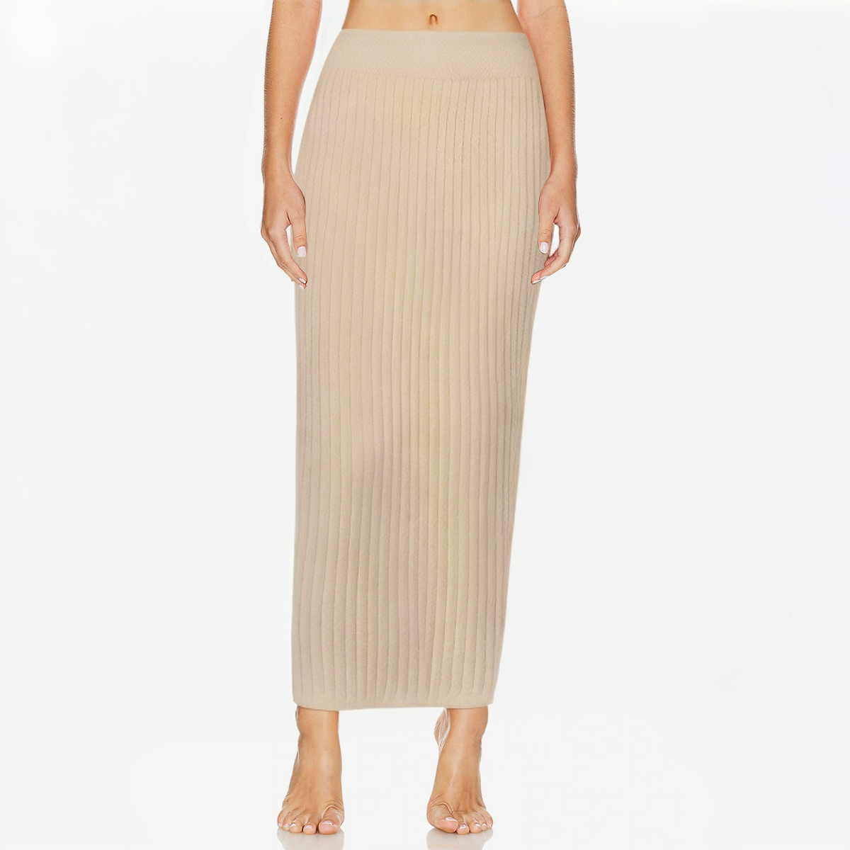 This simple and versatile solid color knitted cashmere skirt is made of high-quality cashmere and wool blended fabrics. It is soft, warm and comfortable, especially suitable for autumn and winter. Its simple solid color design makes this skirt very versatile. Whether it is paired with a formal shirt or a casual sweater, it can easily create an elegant and fashionable outfit. The skirt is made of plain knitting technology, which makes it more close-fitting and moderately elastic, showing natural and smooth lines. The straight skirt design not only modifies the leg curve, but also provides comfortable space for activities, suitable for all body shapes. The breathable design makes you feel comfortable and at ease when wearing it, and you can stay refreshed even if you wear it for a long time.