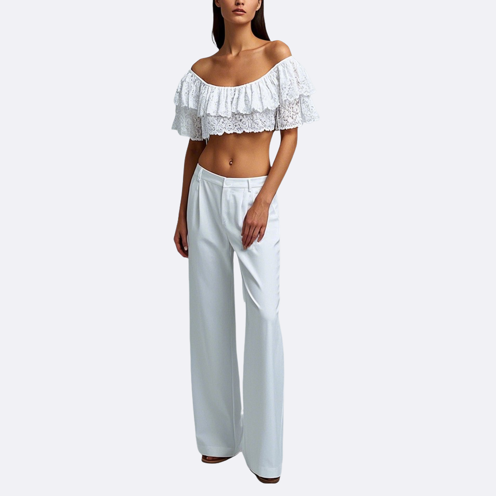 Design highlights: Off-shoulder style, generously showing the shoulder line, romantic and sexy; the ruffles are stacked, smart and elegant, adding a sweet atmosphere.