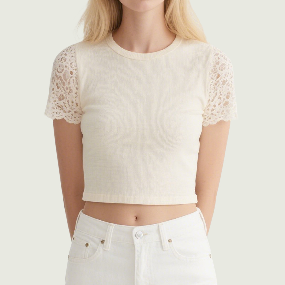 Crew neck, short sleeves, and a slim fit for a cute, casual style. Layer at the waist for a stylish crop top.