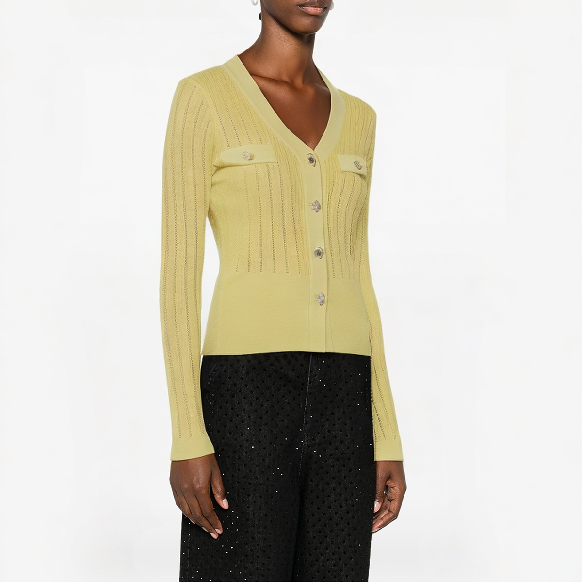 - V-neck design: The classic V-neck design not only highlights the elegant neck line, but also creates a simple and generous temperament. The V-neck design also provides more possibilities for matching necklaces or scarves, adding a sense of layering and sophistication to the overall shape.